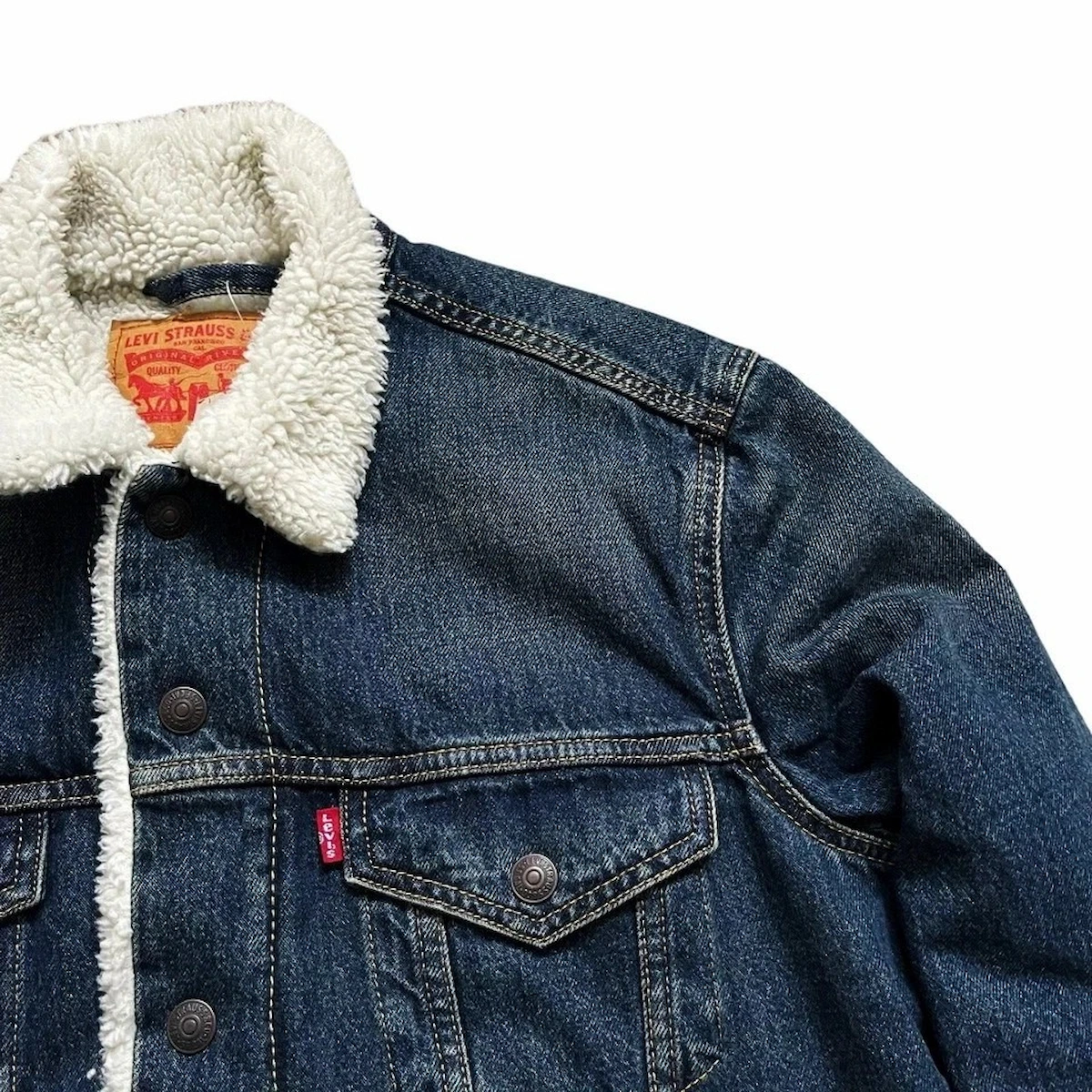 Levis Mens Trucker Jacket Denim Jeans Sherpa, Size M